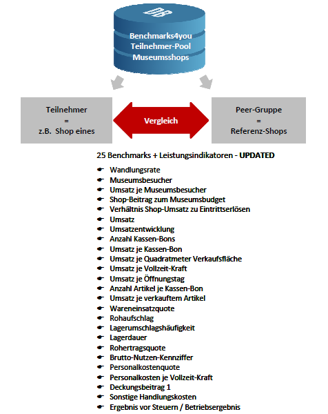 Auf Basis der aktuellsten Ergebnisse aus dem Museumsshop-Betriebsvergleich für das Jahr 2018 haben wir die Datenbank konsequent weiter ausgebaut und vergleichen den individuellen Shop mit genau jenen Referenzbetrieben aus dem Shop-Datenpool, die der gleichen Museumsart angehören.
